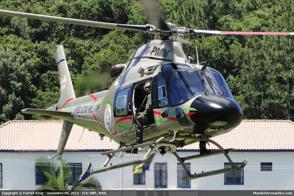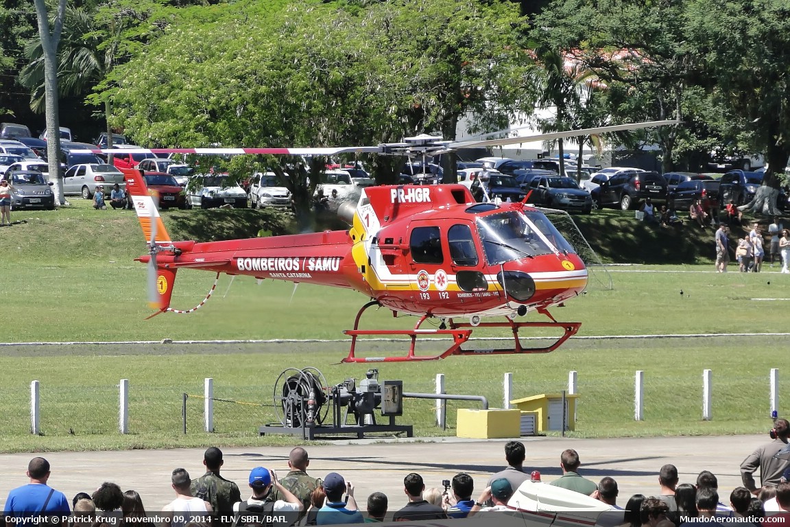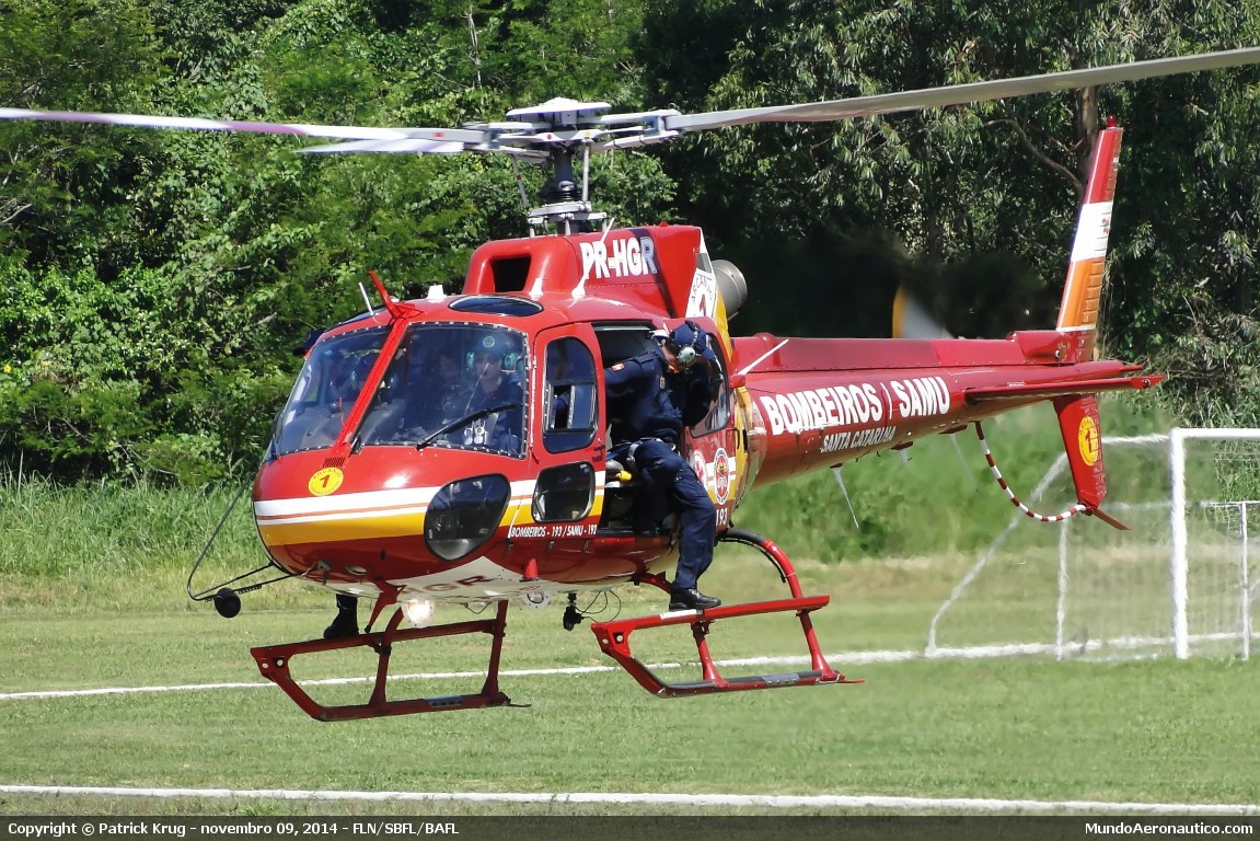 O Eurocopter AS350 B2 Esquilo PR-HGR "Arcanjo zero-uno" (s/n 3771) pertencente ao FUMCBM - Fundo de melhoria do Corpo de Bombeiros Militar de Santa Catarina.