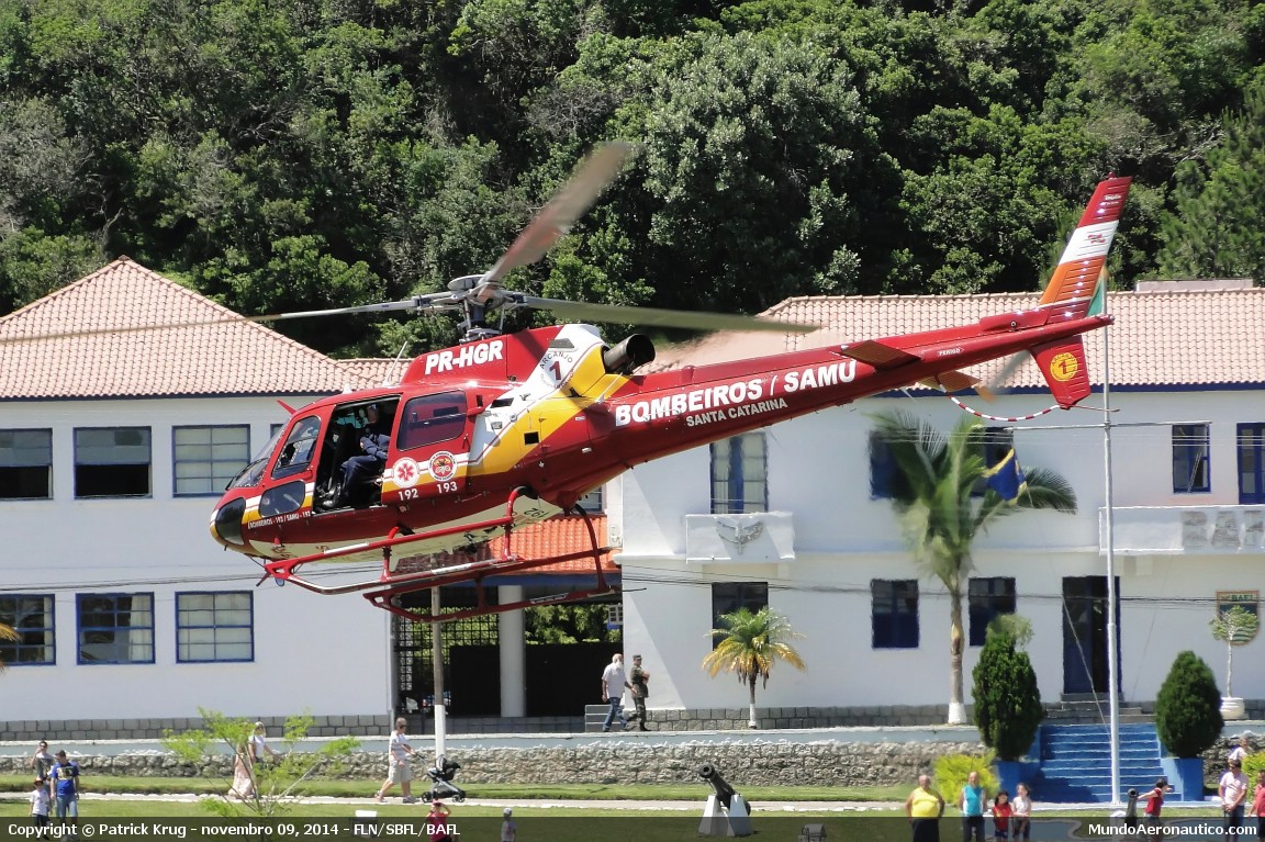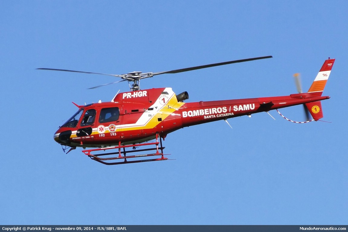 O Eurocopter AS350 B2 Esquilo PR-HGR "Arcanjo zero-uno" (s/n 3771) pertencente ao FUMCBM - Fundo de melhoria do Corpo de Bombeiros Militar de Santa Catarina.