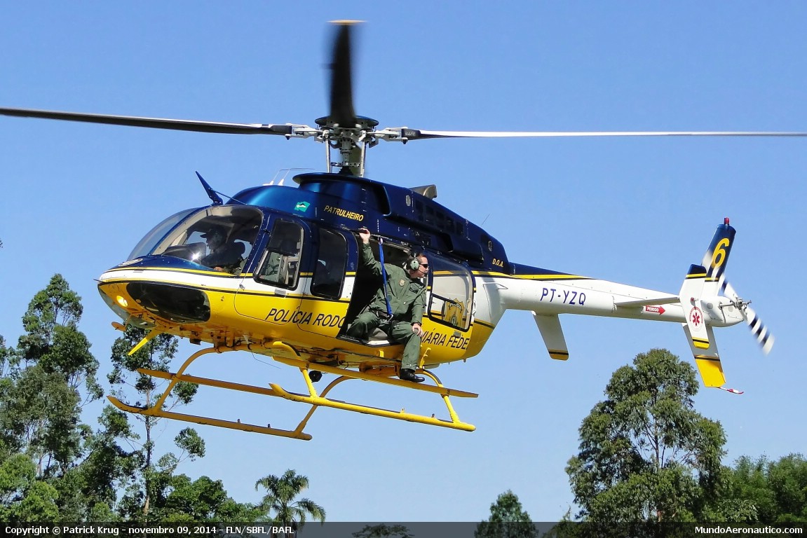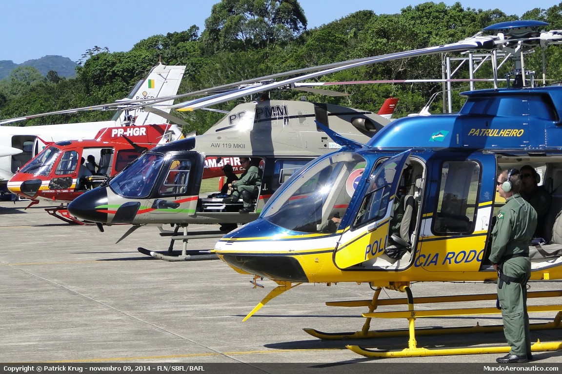 A Divisão de Operações Aéreas (D.O.A.) da Polícia Rodoviária Federal levou o Bell 407 PT-YZQ "Patrulha 06" (s/n 53305).