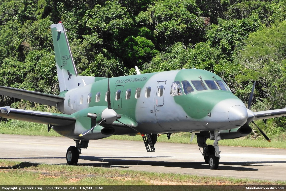 Proveniente do Quinto Esquadrão de Transporte Aéreo (5º ETA), "Esquadrão Pégaso", de Canoas/RS, o C-95CM Bandeirante (EMB-110P1) FAB2341 (s/n 110484) conduziu a equipe de salto livre "Falcões" a 12000ft para a realização de sua apresentação.